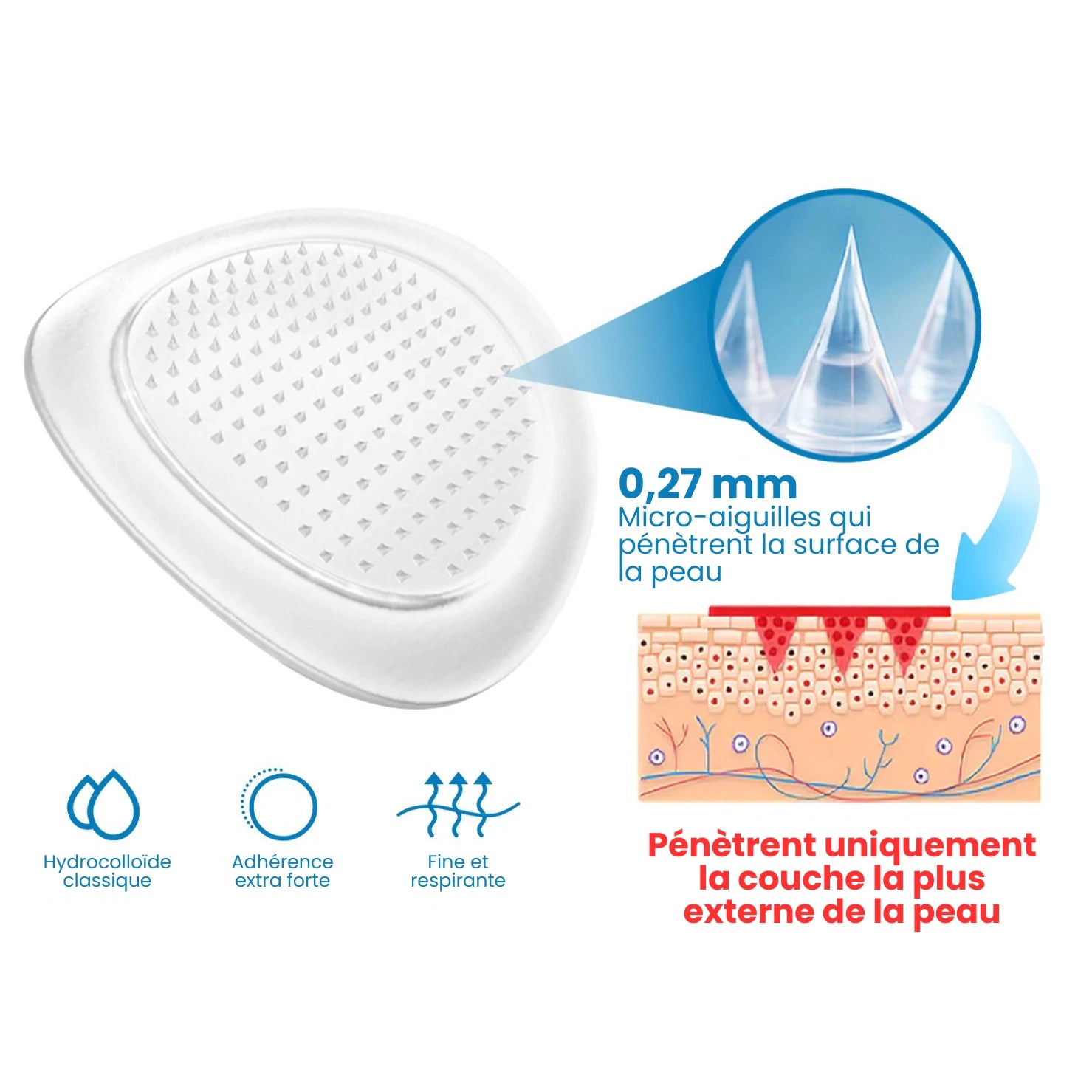 Ses micro-aiguilles ultra-fines délivrent des ingrédients naturels puissants directement à la source de la douleur — sans médicament, sans piqûre, sans effet secondaire.
